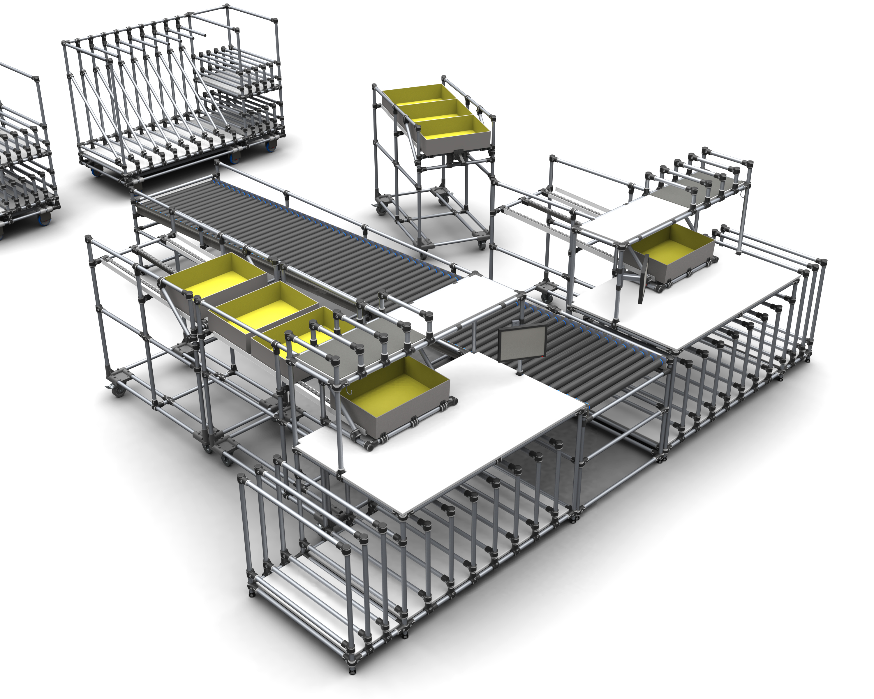 Every item has its place on the workstation which helps operatives to maintain a clear and uncluttered working environment but also helps them to identify the correct tool and component. Everything is within easy reach for efficient and ergonomic working. All of the modular components are reusable which means that structures can be modified whenever the application requirement changes or when small incremental process improvements are identified. This ability to adapt and evolve is central to the lean manufacturing concept.